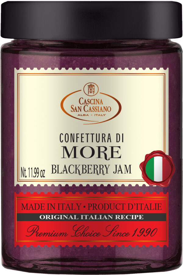 Blackberries originates from a wild thorny bush, while the mulberries are the fruits of a tree once cultivated for its leaves, used to nurture the silk-worms. We prepare this preserve with just blackberries and sugar.