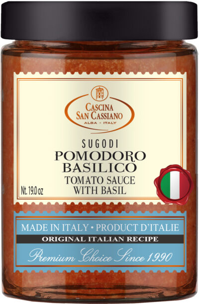 Tomato comes from Southern and Central America, and arrived in Europe thanks to Hernan Cortés in 1540: as early as in 1544, there are documental evidences of its farming in Italy, in the territories of Emilia Romagna, Tuscany and Souther regions. At first it was thought to be poisonous, and used just for decorative purposes, but at last in the XVIIIth century tomatoes started to be eaten and its farming rose steeply. To prepare this sauce we use italian tomatoes and basil.