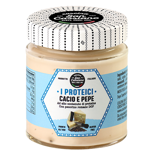Salsa di formaggio ad alto contenuto di proteine preparata con formaggio Pecorino. Prodotto perfetto per gli sportivi per condire la pasta e i risotti.