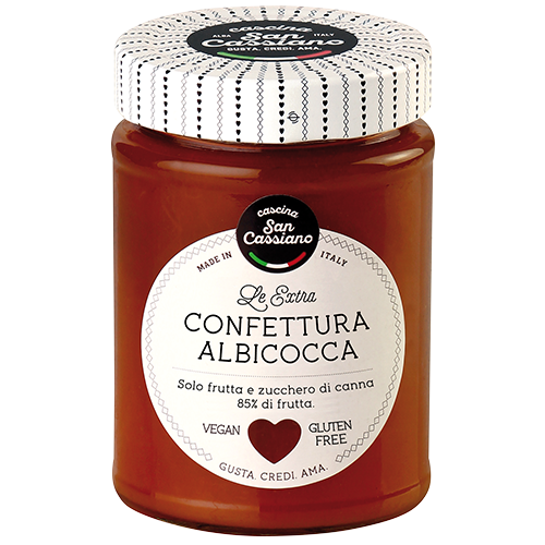 Confettura extra preparata con albicocche e zucchero di canna. Ideale spalmata sul pane, in abbinamento a formaggi freschi o per guarnire dolci e yogurt. Ottima come farcitura per la “Sachertorte”.