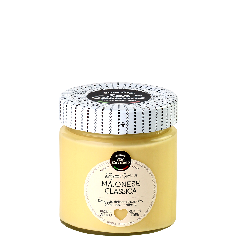 Classica maionese preparata seguendo la ricetta tradizionale a base di uova, olio e limone. Ottima per preparare stuzzichini o in abbinamento a secondi piatti a base di carne, pesce o verdure.